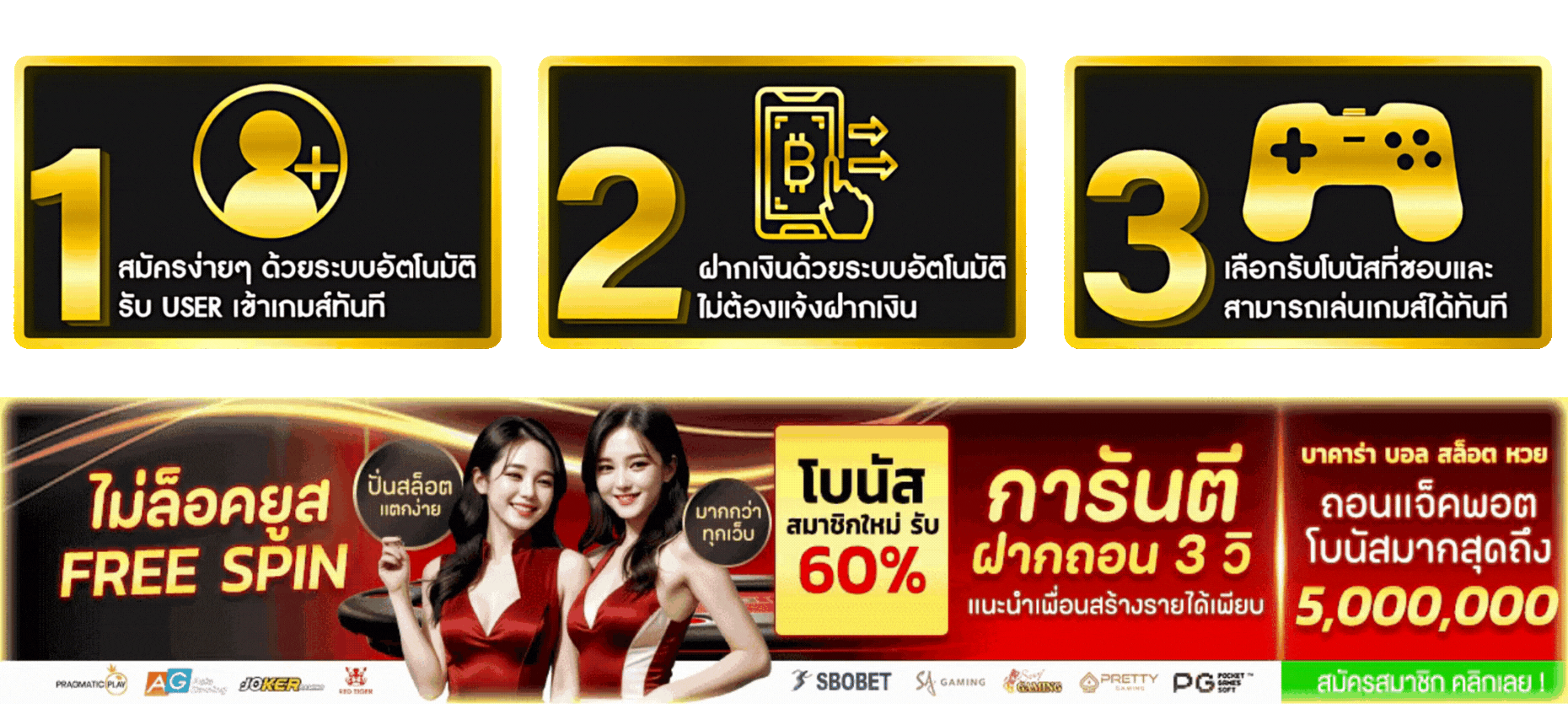 การสมัครสมาชิกทำได้ง่ายผ่านหน้าเว็บ ใช้เวลาไม่เกิน 5 นาที ยืนยันตัวตนด้วยเบอร์โทรศัพท์และบัญชีธนาคาร เมื่อสมัครเสร็จสามารถเริ่มเล่นได้ทันที มีเกมให้เลือกมากมายจากค่ายดังระดับโลก อัพเดทเกมใหม่สม่ำเสมอ